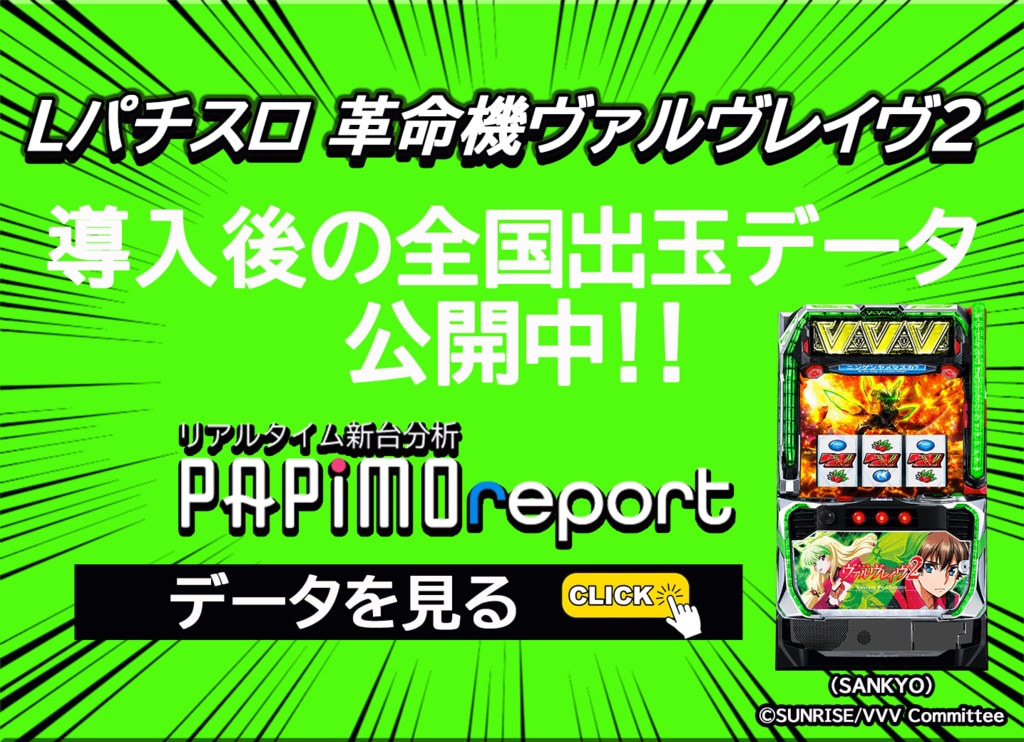 「Lパチスロ 革命機ヴァルヴレイヴ2」導入後の全国出玉データは、下記バナーをクリックして、ご覧ください。