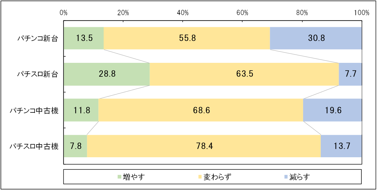 一方、パチスロは今回17.3ポイントまで低下し、3か月後は13.6ポイントまでさらに落ち込む見通しです。