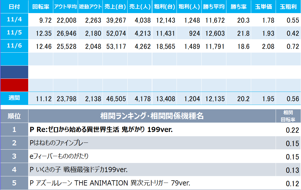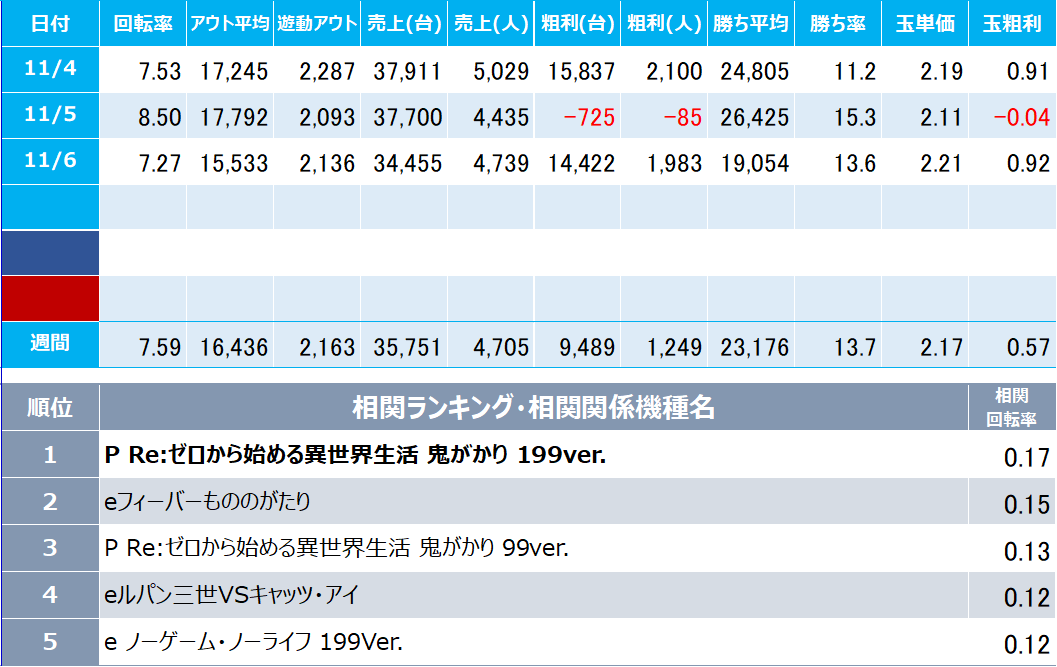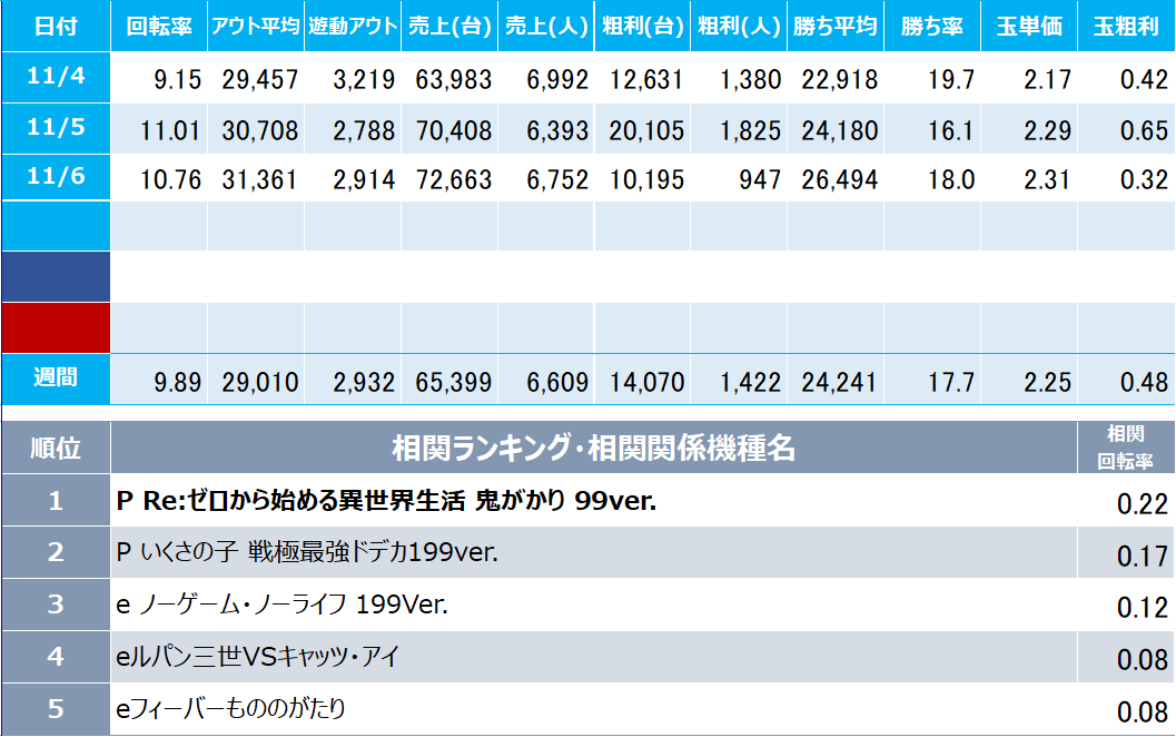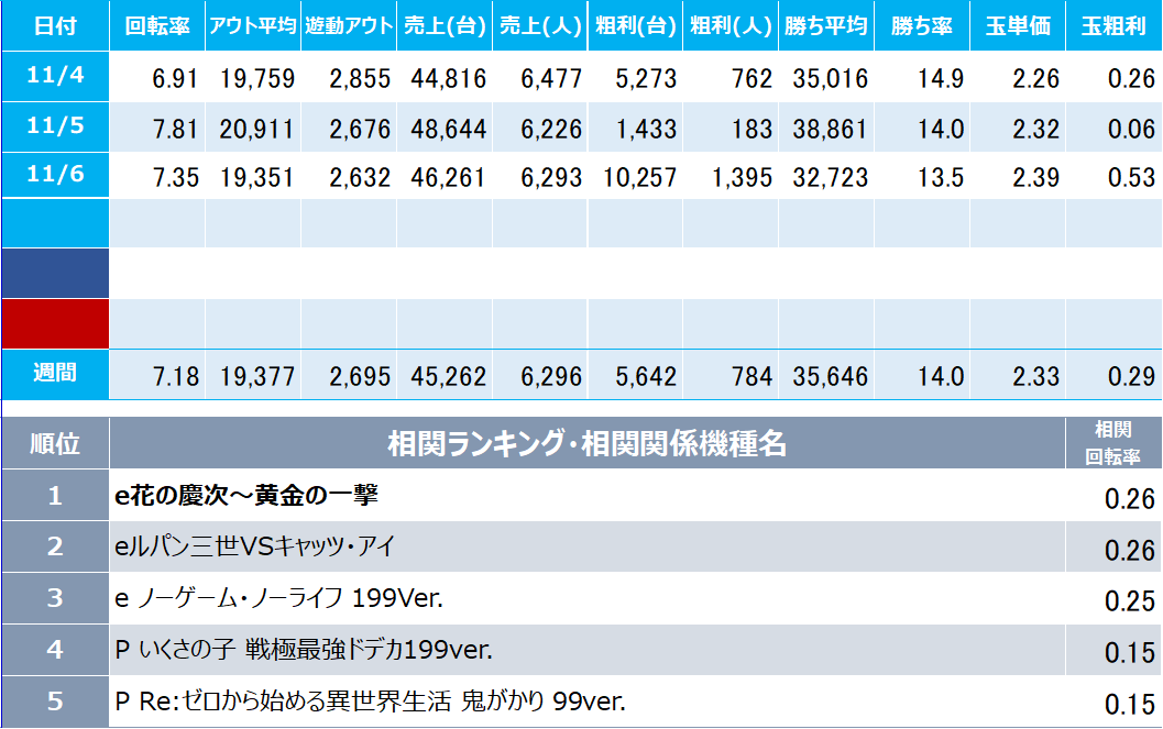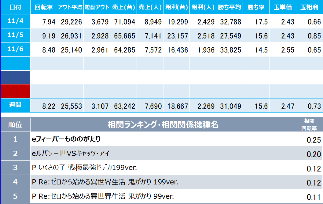 初遊技機種:お客様が来店して最初に遊技した機種