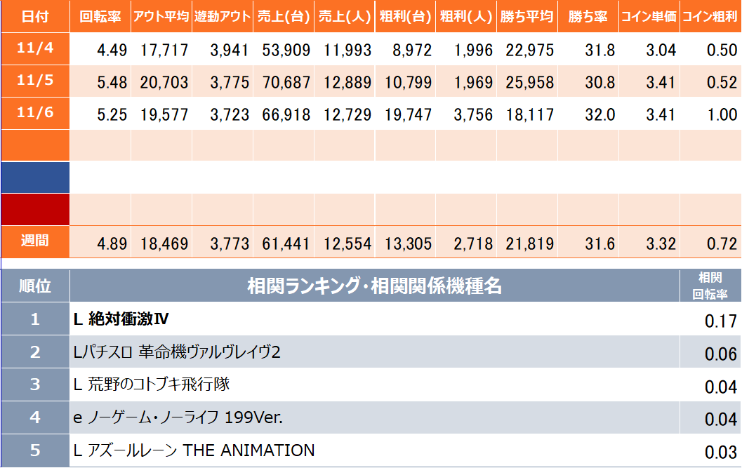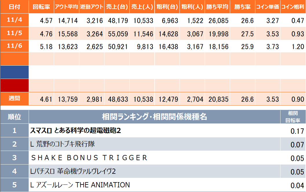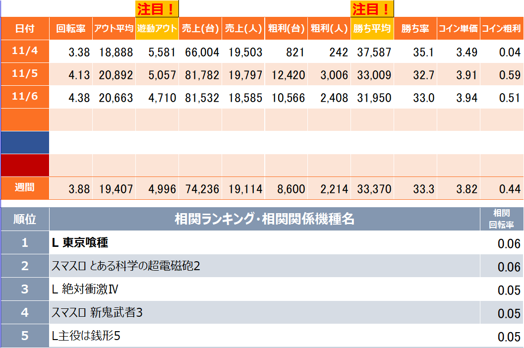 - 勝ち率:機種を遊技したお客様のうち勝ったお客様の割合