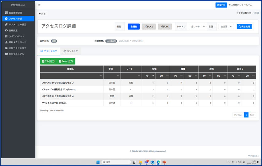「PAPIMOnavi」の店舗管理画面では、お客様のアクセス履歴が閲覧できます。