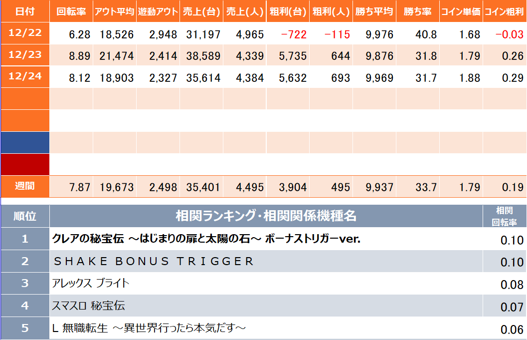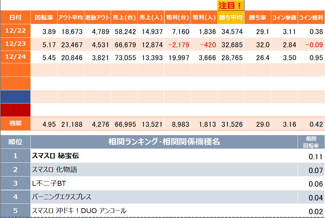 - 勝ち率:機種を遊技したお客様のうち勝ったお客様の割合