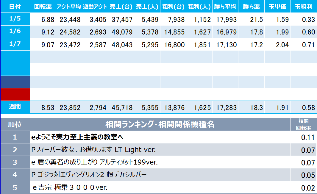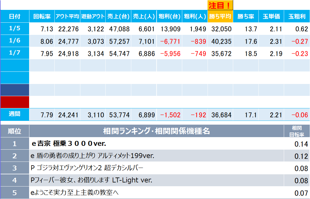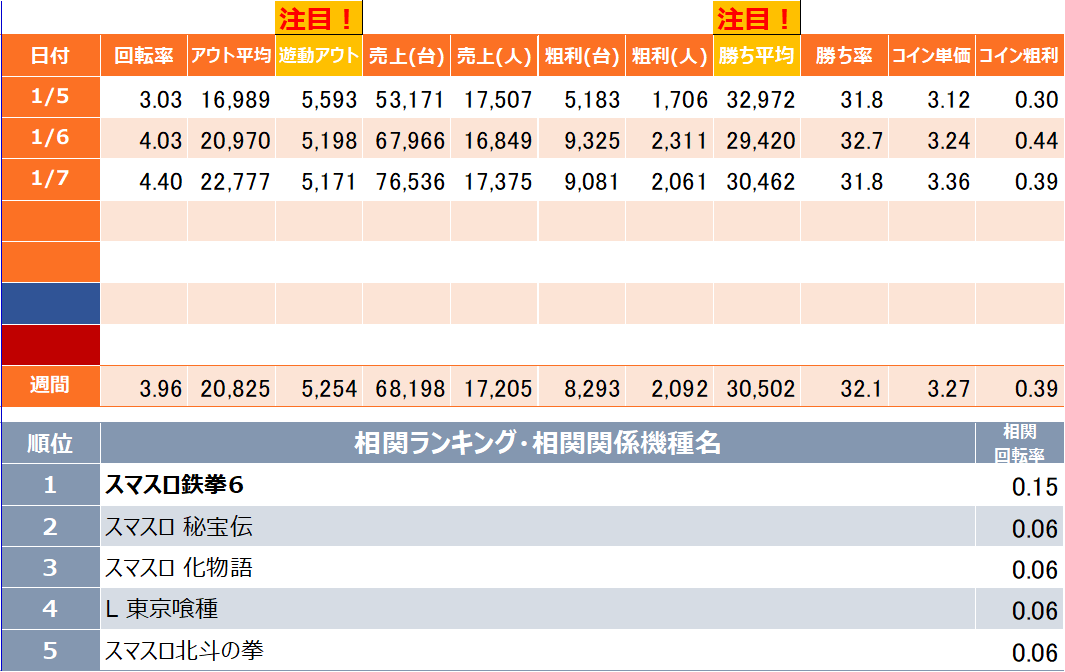 - 勝ち率:機種を遊技したお客様のうち勝ったお客様の割合