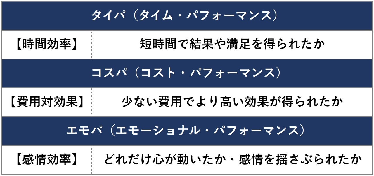 効率良く結果を得たいという「タイパ」重視の人がいる一方、感情が動く体験に価値を置く「エモパ」も重視する人が増えていることが、近年の消費者調査や社会動向から明らかになっています。