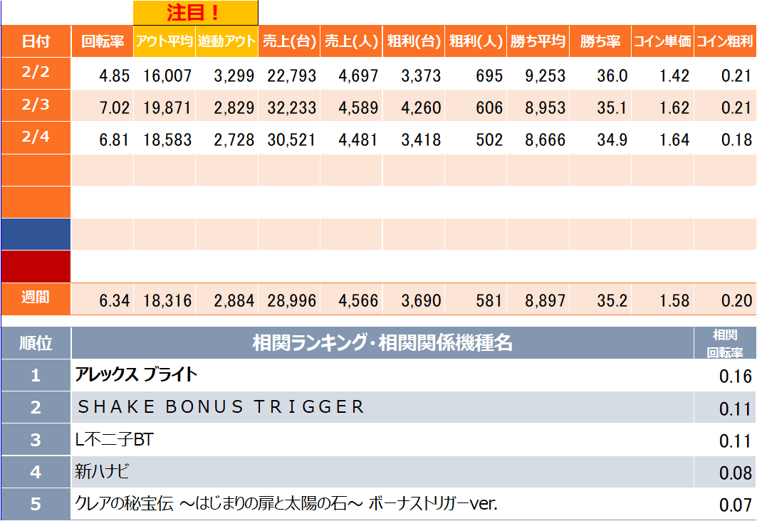- 勝ち率:機種を遊技したお客様のうち勝ったお客様の割合
