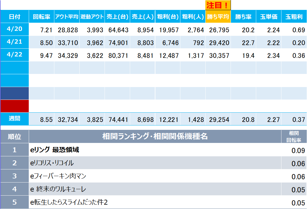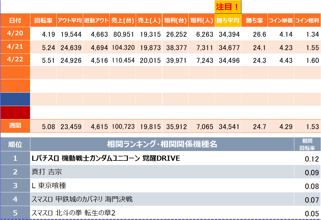 - 勝ち率:機種を遊技したお客様のうち勝ったお客様の割合