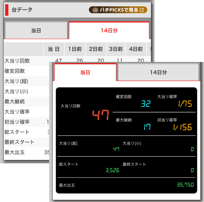 当日のデータはもちろん、過去のデータもご用意しています。また、最新の機種から話題の機種までスペックの確認ができますので、自宅や外出先から大当たり一覧や履歴を解析可能です。また、ランキング機能も充実。どの機種や台が人気なのかパチンコ・パチスロランキングでチェックすれば、打つ台の指標になるかもしれません。